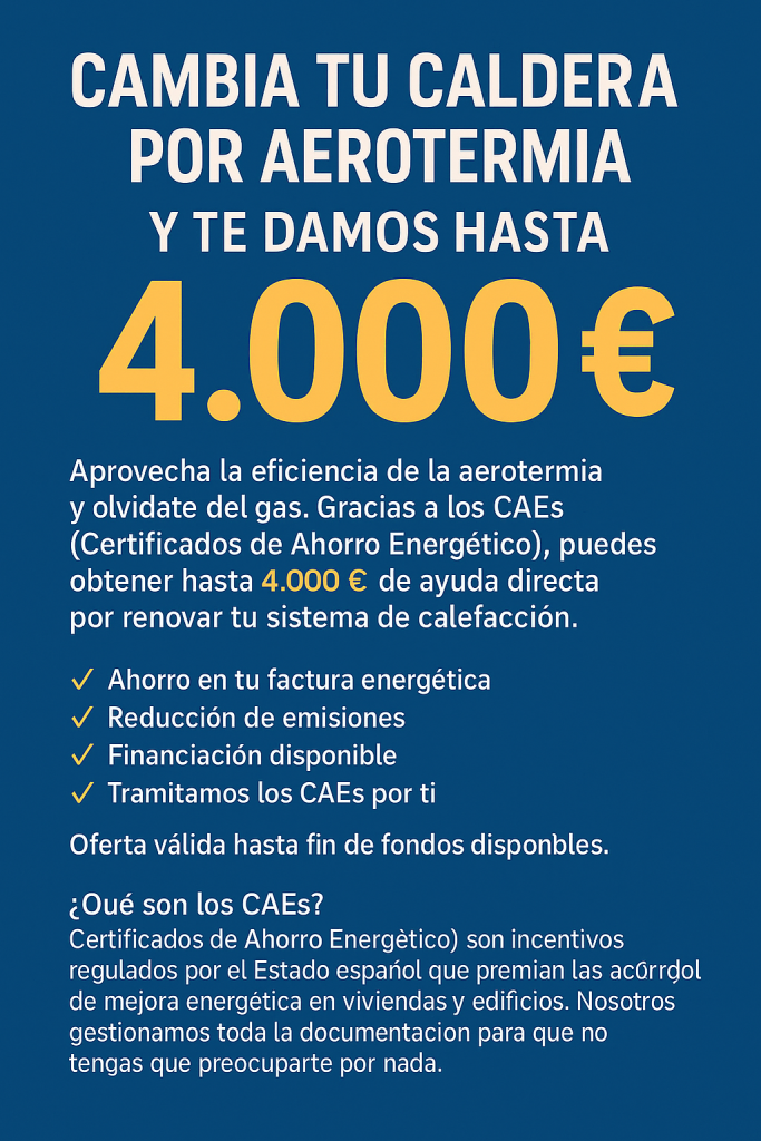 - Solicita la “Promoción aerotermia + CAEs” y agenda tu visita técnica.